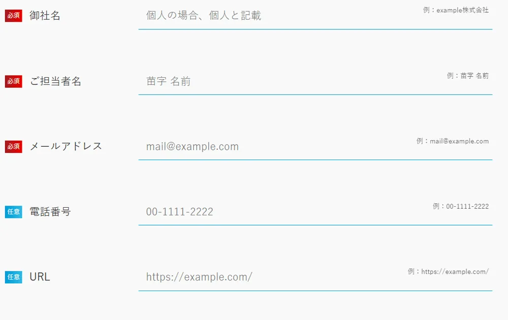 オプションにてフォームの設置が可能です。項目数に制限はありません。なお、フォームを設置する場合1ページ扱いになります。